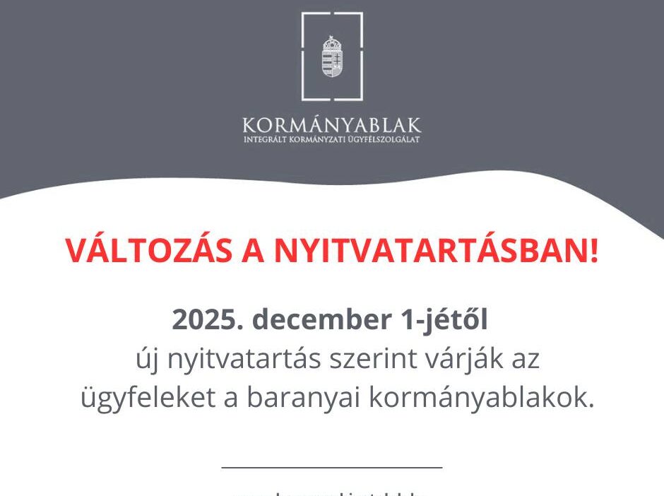 Bővebb info: December 1-jétől változik a baranyai kormányablakok nyitvatartási ideje | Kormányhivatalok