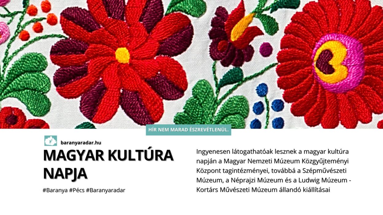 Mint írták, a magyar kultúra napján, január 22-én többek között a Szépművészeti Múzeum, a Magyar Nemzeti Galéria, a Petőfi Irodalmi Múzeum, a Néprajzi Múzeum és a Ludwig Múzeum – Kortárs Művészeti Múzeum, valamint a sárospataki Rákóczi Múzeum és a visegrádi Mátyás Király Múzeum állandó kiállításai tekinthetők meg ingyenesen. A vezetők egyben kérik az ország közgyűjteményeit, hogy e jeles napon lehetőségeik szerint csatlakozzanak kezdeményezésükhöz.